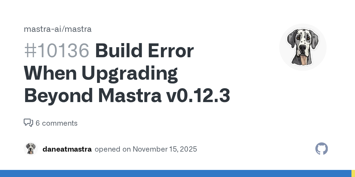 I'm experiencing a build failure when attempting to upgrade Mastra beyond version 0.12.3. The last version that builds successfully is