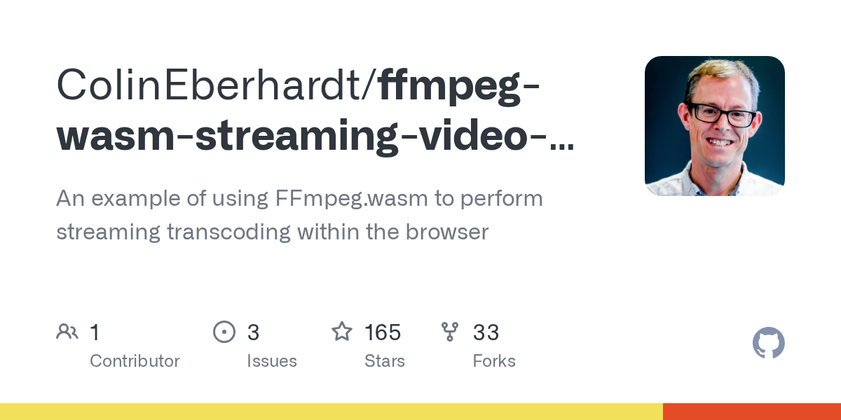 An example of using FFmpeg.wasm to perform streaming transcoding within the browser - ColinEberhardt/ffmpeg-wasm-streaming-video-player