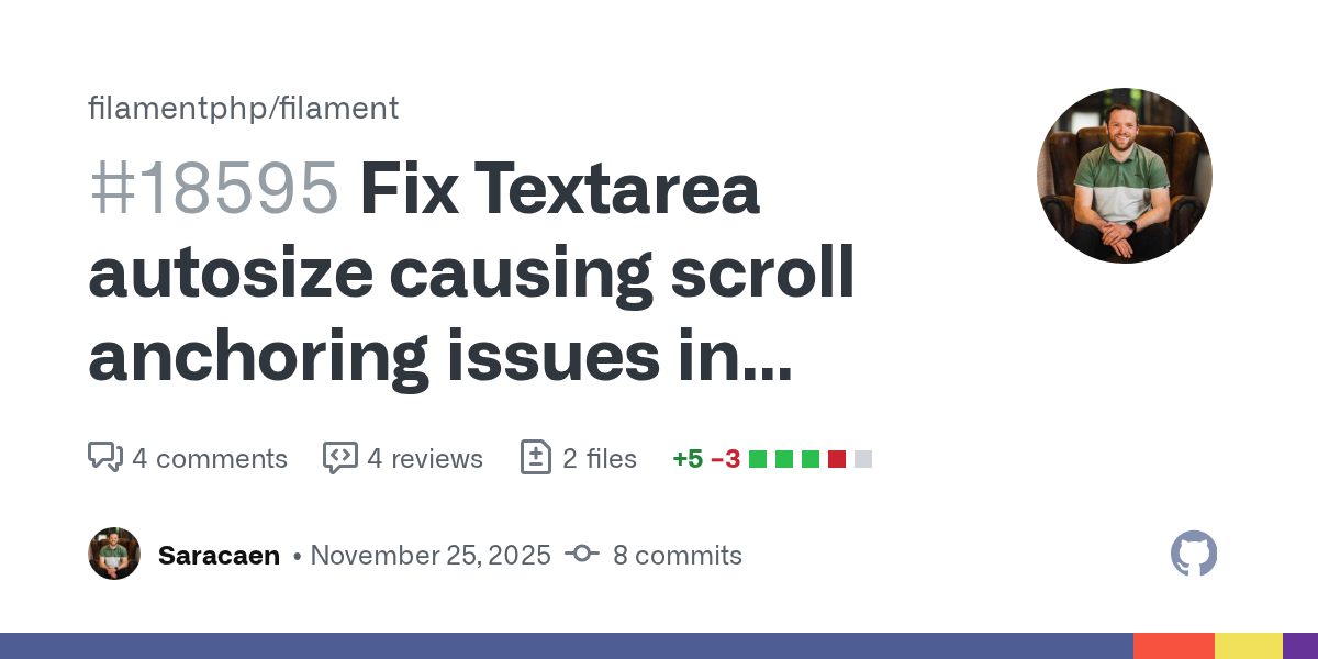 I am using filament v4.2.4. I set Textarea component (Address Field) autosize with rows(5) but on initial page load it height shrinks in chrome browser but it works in previous version