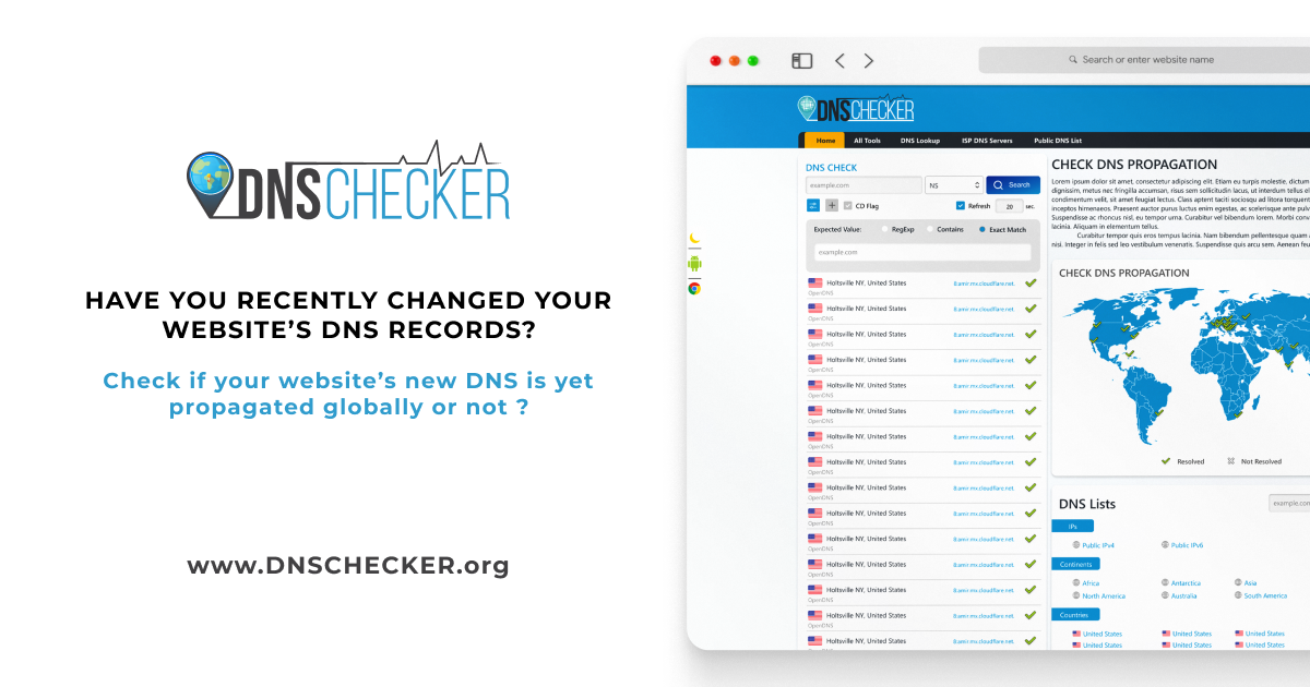 Check DNS Propagation worldwide. DNS Checker provides name server propagation check instantly. Changed nameservers so do a DNS lookup and check if DNS and nameservers have propagated.