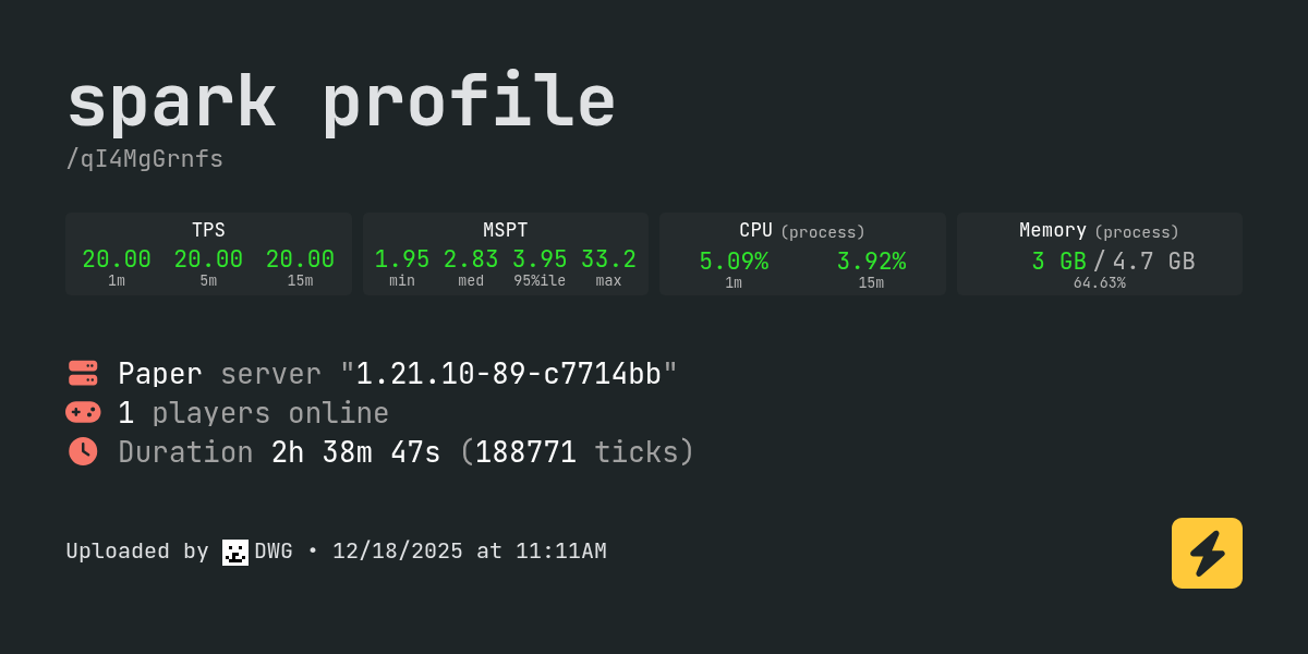 Overview of plugins and the server in general are here: https://spark.lucko.me/qI4MgGrnfs